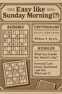 With apologies to The Commodores for abusing their song, here is the first of this year’s Sunday Puzzle links. We like to give you something to do when you have broken the ciphers and need to wind down, so we will post something here every Sunday am. If you have a suggestion or a favourite puzzle that you think we should include then get in touch by emailing me at [email protected]!